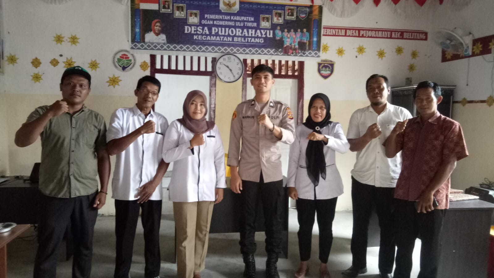 Kepala Desa Pujo Rahayu, Dwi Ningsih, S.E., menyambut dengan hangat kedatangan Bhabinkamtibmas. Pertemuan berlangsung di Balai Desa Pujo Rahayu dan dihadiri oleh beberapa tokoh masyarakat dan perangkat desa.